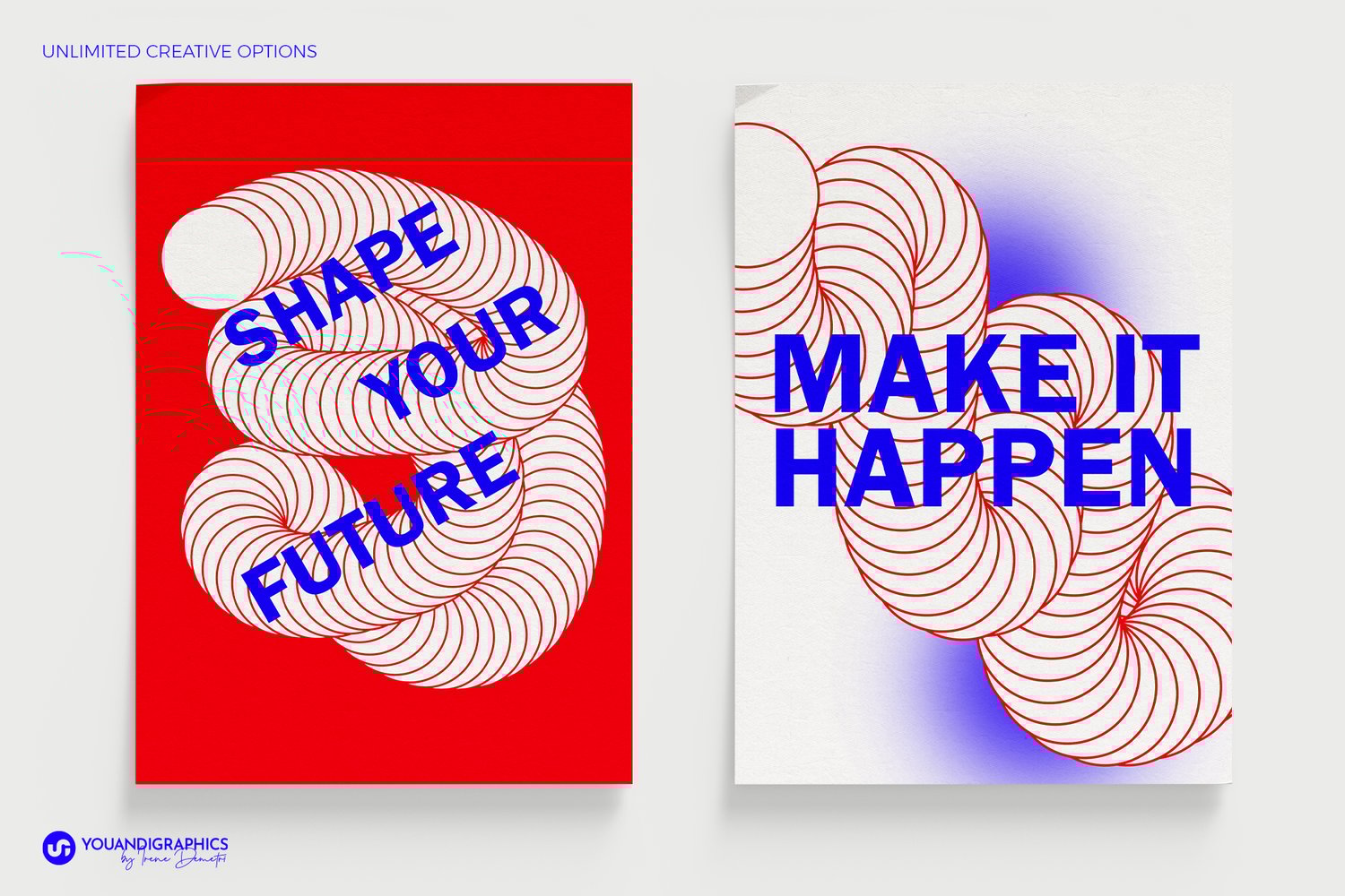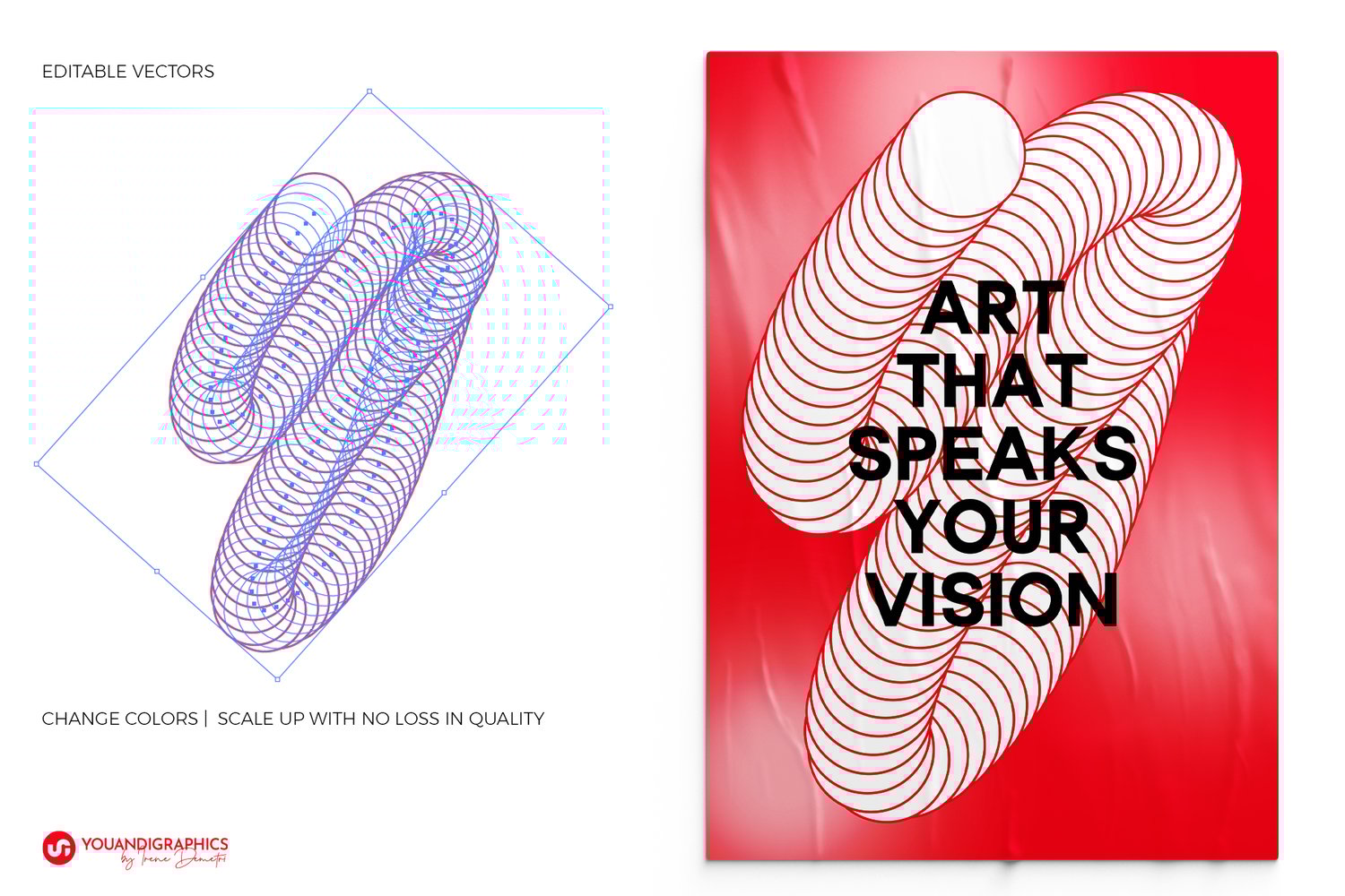 Abstract Shapes Vectors Pack | A dynamic collection of 80 edgy and abstract vector shapes. Featuring a blend of 3D-inspired forms with a 2D aesthetic, these designs bring movement and rhythm to your creative projects. Perfect for creatives, these assets add flair to any project, whether for print or digital use. Can also be used in Canva and similar apps.