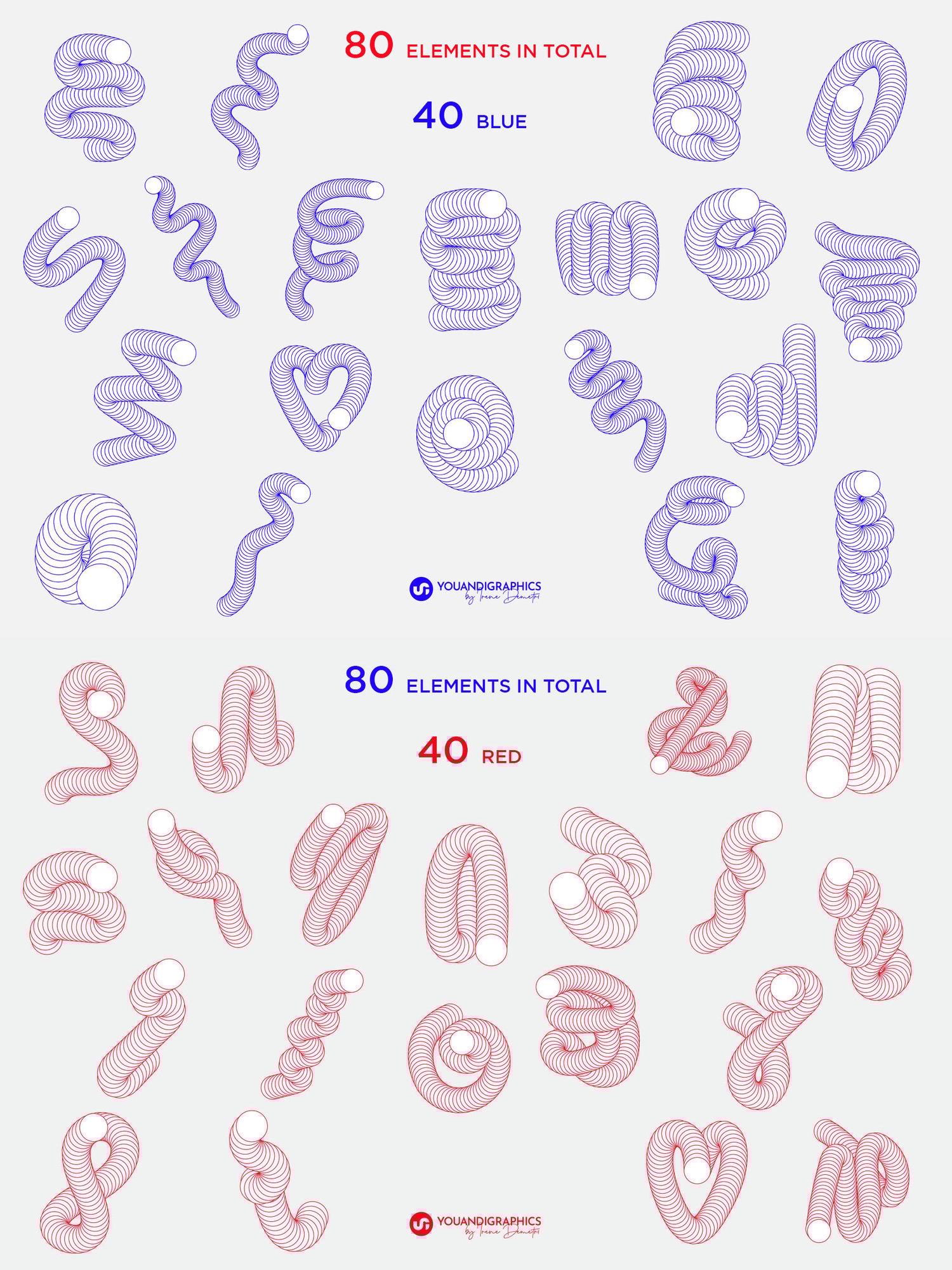 - 80 unique PNG files for instant use (40 in red + 40 in blue)