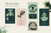 Introducing Sustainable Icons – a vibrant collection of 3D icons with lush green foliage elements, embodying the essence of sustainability and Eco-friendliness. Each meticulously crafted icon depicts various aspects of environmentally conscious living, from renewable energy sources to recycling symbols, offering a visually engaging way to promote eco-friendly practices.