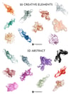 A collection of 20 3D Abstract Ribbon Shapes available as Isolated PNG files with transparent backgrounds.