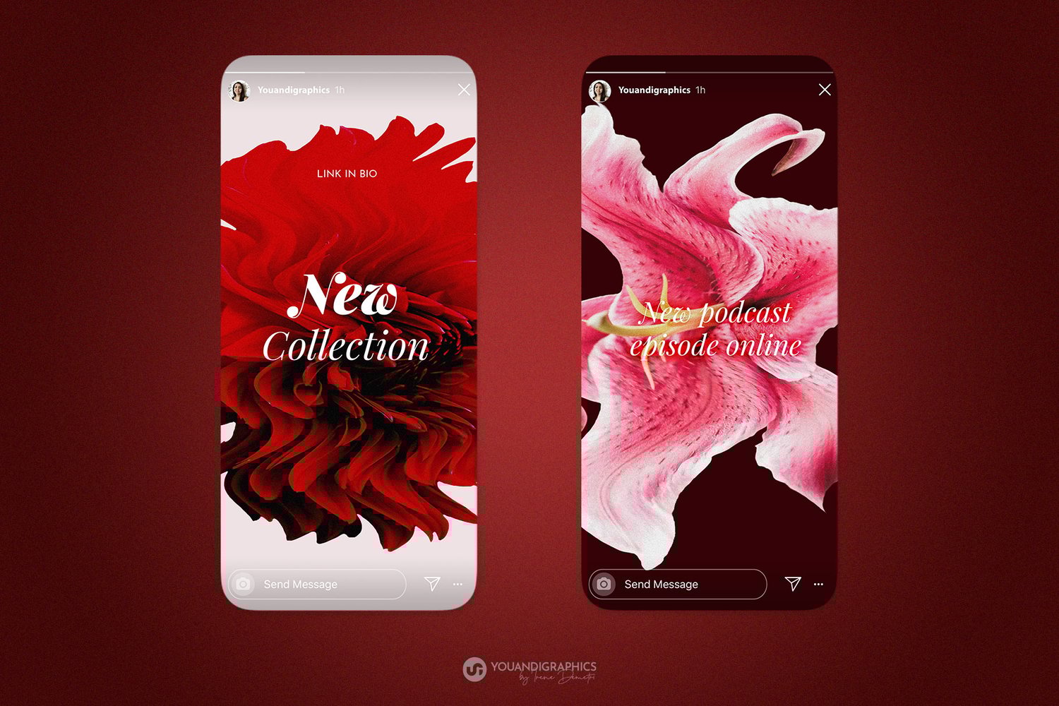 Each flower features detail and subtle grain texture, perfect for branding, packaging, social media, posters, and creative projects that need a spark of drama and elegance.