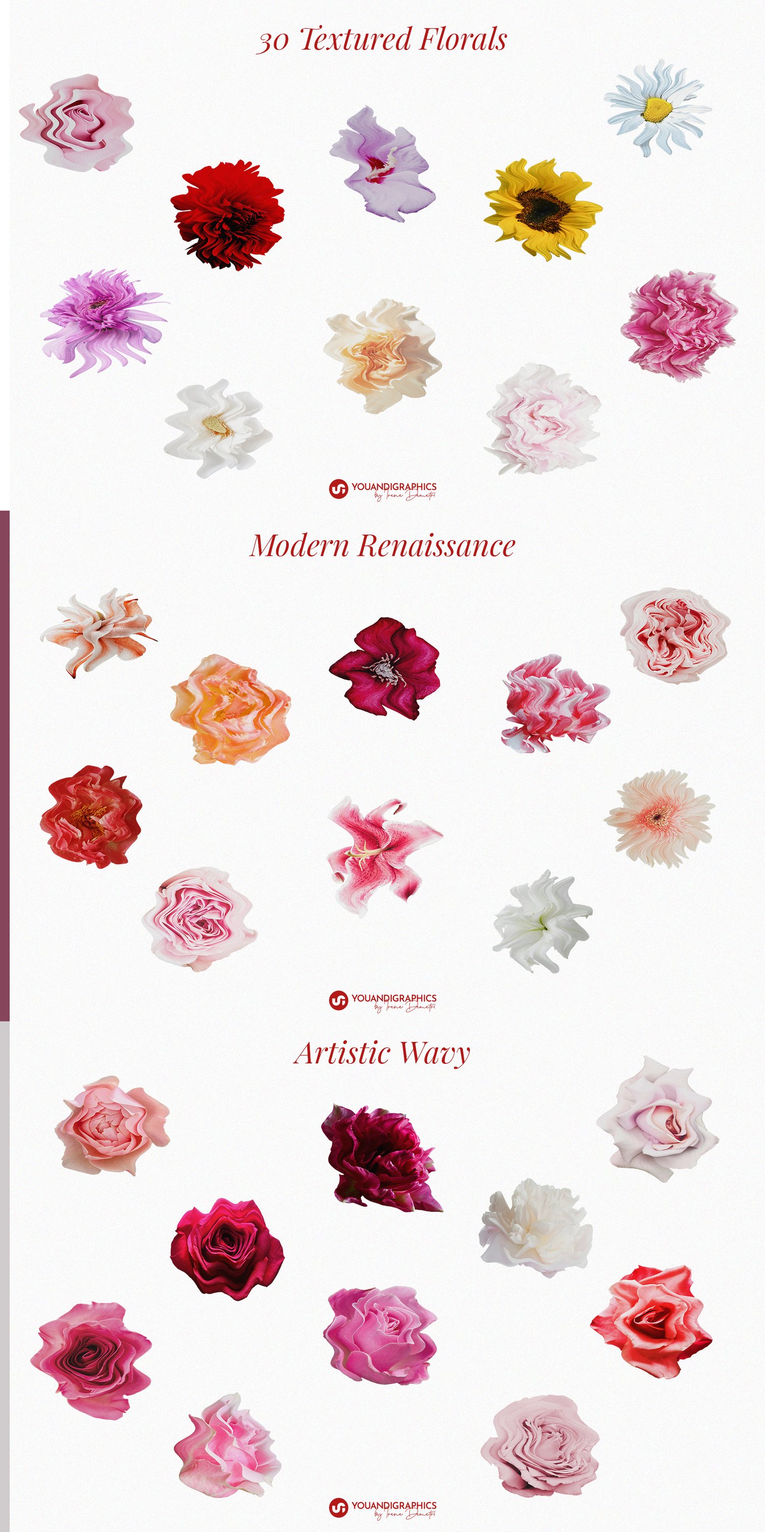 Modern Renaissance Florals is a collection of textured, high-resolution floral PNGs inspired by renaissance richness and reimagined with a modern edge. Romantic yet bold, soft yet expressive, these blooms bring empowered femininity and artistic depth to your designs.