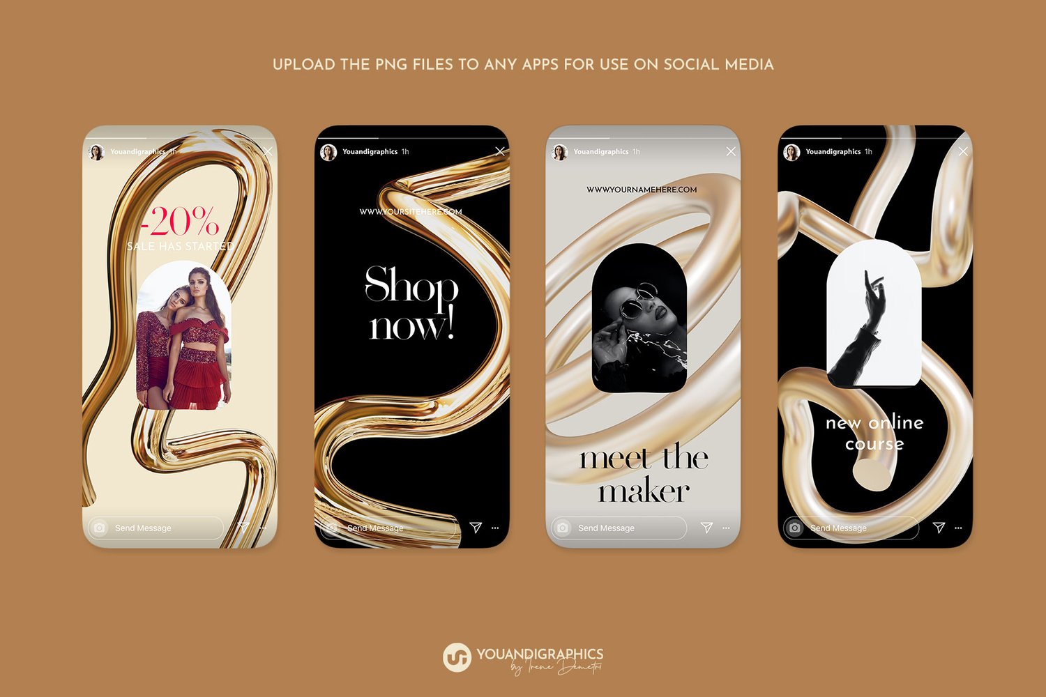 Be completely creative with these Golden shapes that will add a modern, elegant edge to your projects. Add them to any branding, packaging, print or online projects for some unique looking, impressive designs.